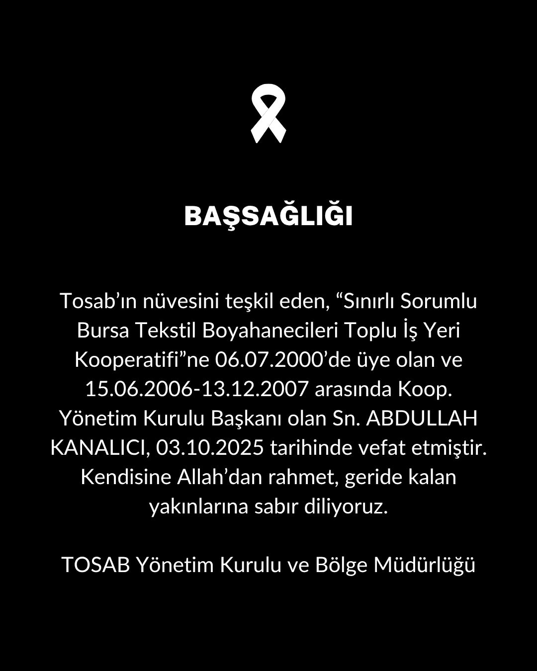 TOSAB Bursa Tekstil Boyahaneleri İhtisas Organize Sanayi Bölgesi (OSB) başvurusu ile;